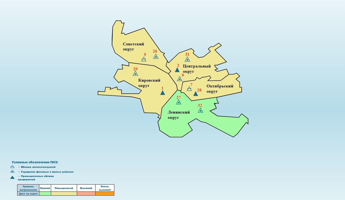Ленинский округ показал наилучшие результаты по чистоте воздуха в течение месяца.