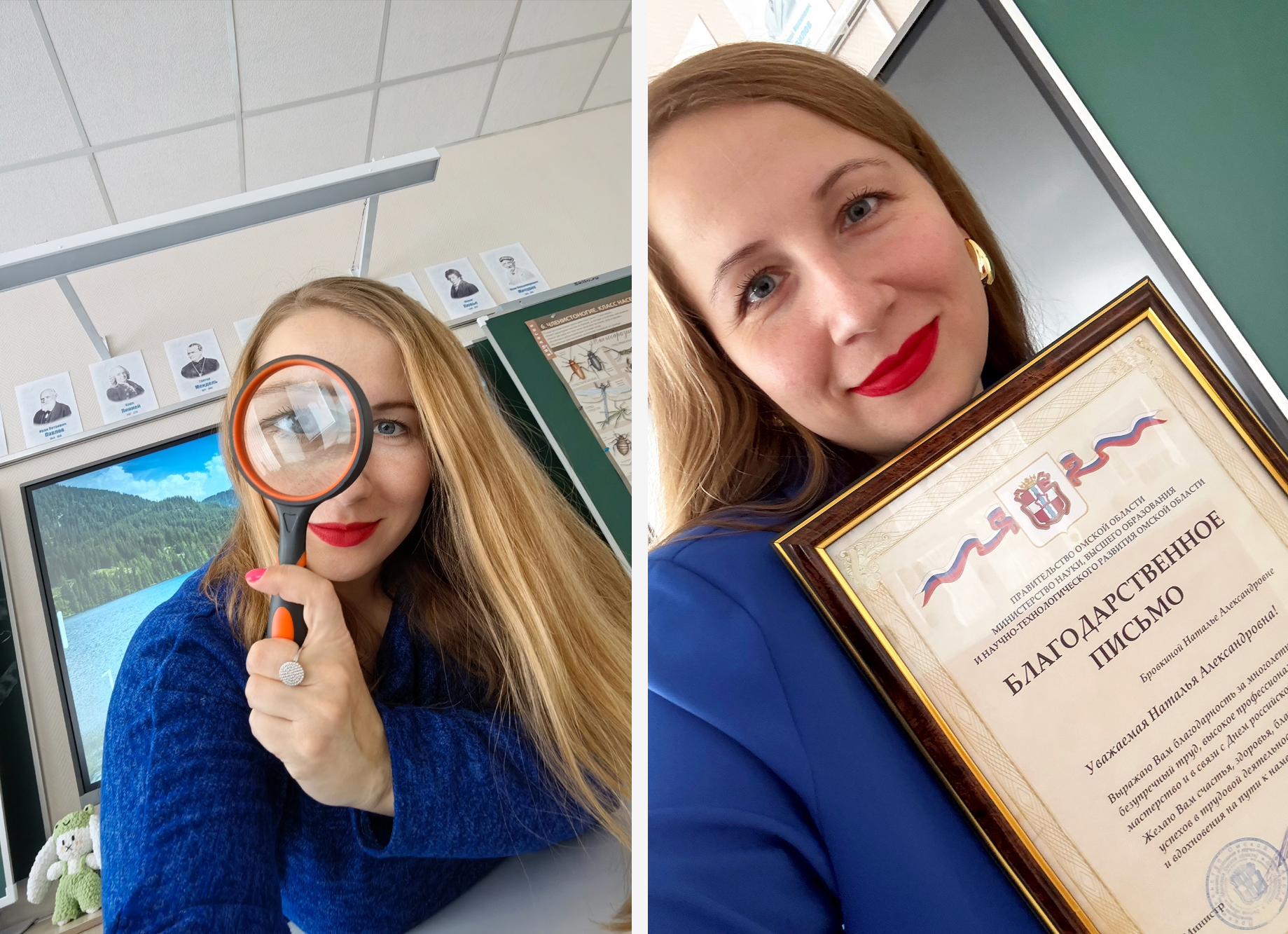 - Наталья Бровкина — учитель биологии инженерного лицея омского авиационного колледжа. Ее педагогический стаж составляет 16 лет. На своей странице во «ВКонтакте» она называет себя «учителем, зажигающим сердца». В феврале 2024 года Бровкина получила благодарственное письмо от министра науки Омской области.