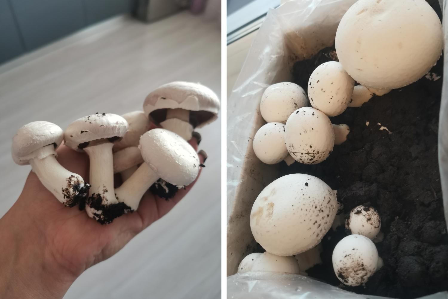 «Для научной работы в школе решили попробовать вырастить в домашних условиях шампиньоны. Выращивали в конце ноября-декабре. Поставили на балкон, погода была мягкая, на балконе было в среднем +10-15 градусов тепла. Как бахнули морозы, перенесли в комнату и поставили там же у балконной двери на пол. Смешали субстрат и землю, поливали и опрыскивали по инструкции. Получили три урожая с одной коробки», — сообщила омичка.