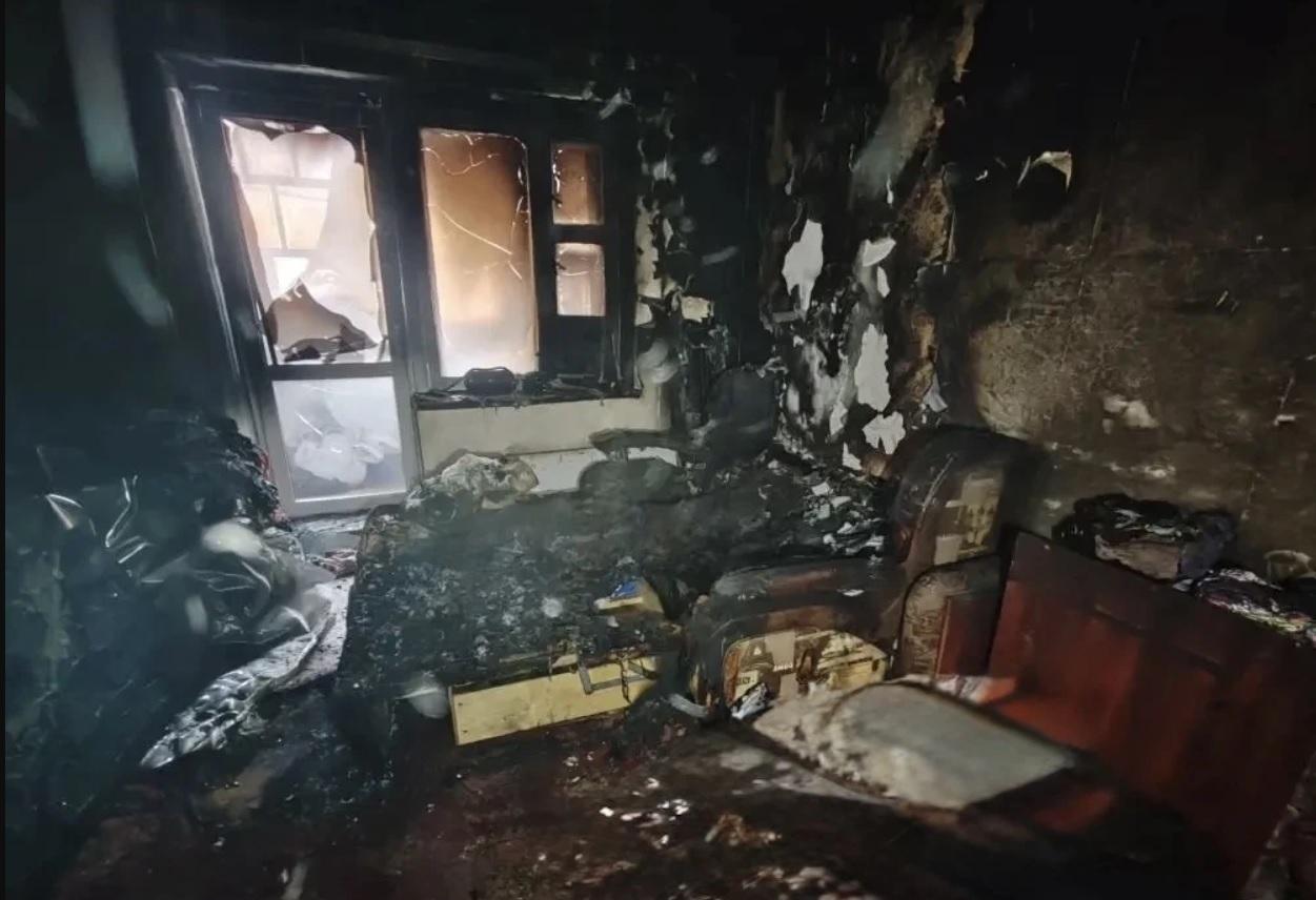 В ходе тушения пожара в зале квартиры спасатели обнаружили тело 49-летней женщины на диване. Рядом у порога лежал без сознания ее четырехлетний внук.