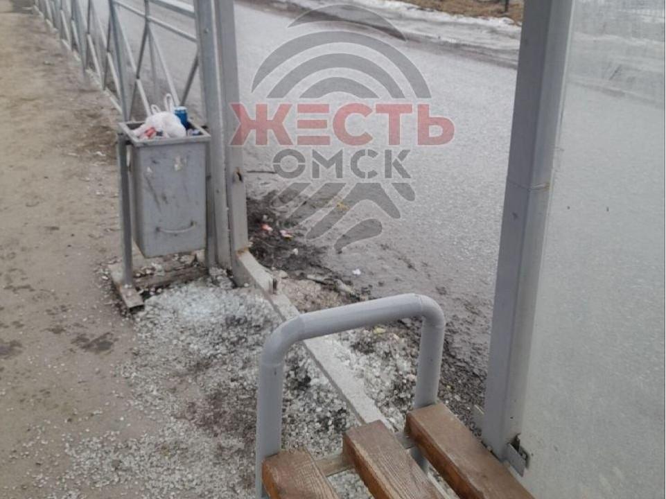 Неизвестные повредили остановку общественного транспорта в Омске, разбив стекло на улице Орловского.