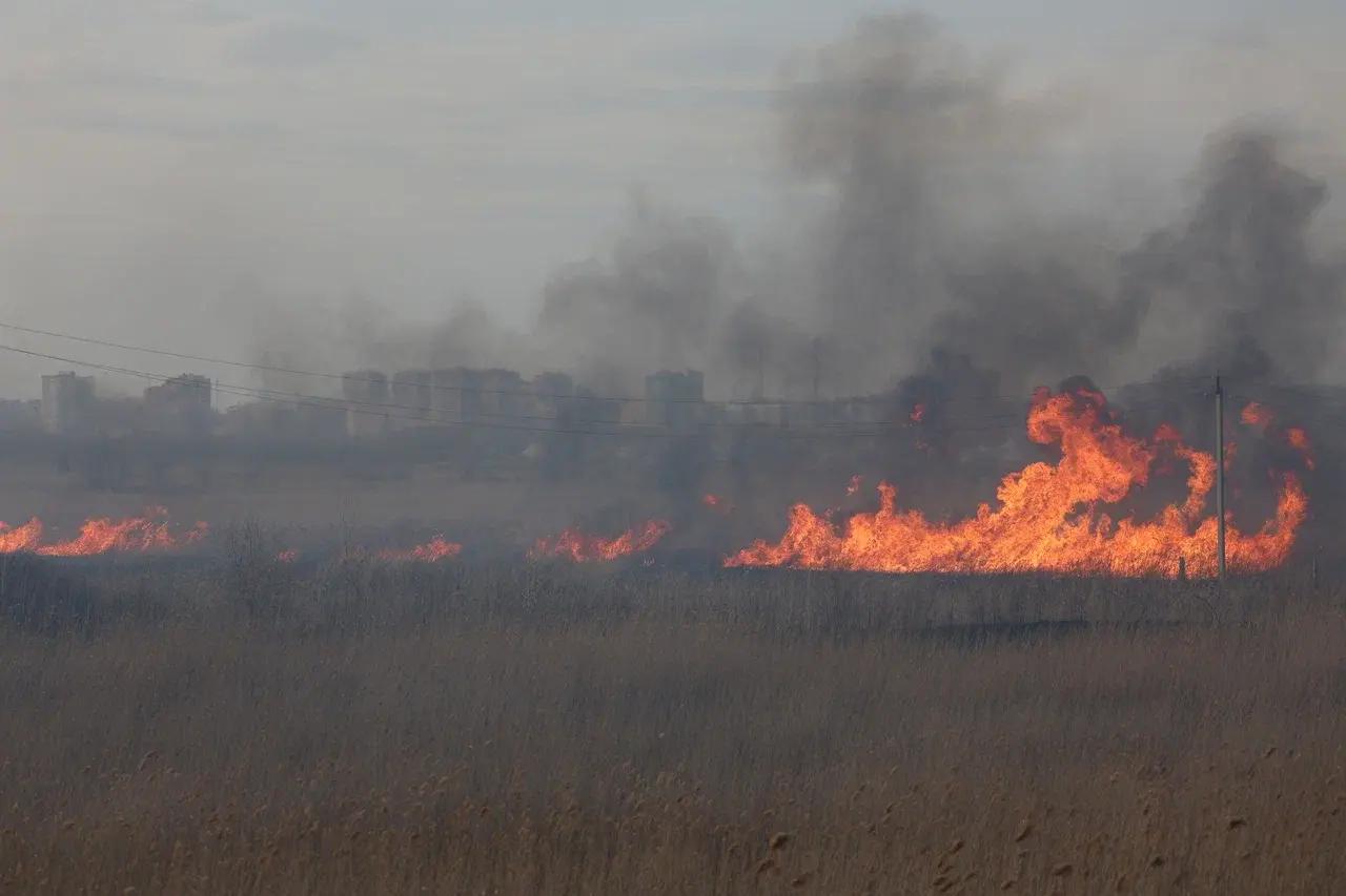 Возгорание камыша на Левобережье окутало дымом улицу Лукашевича
