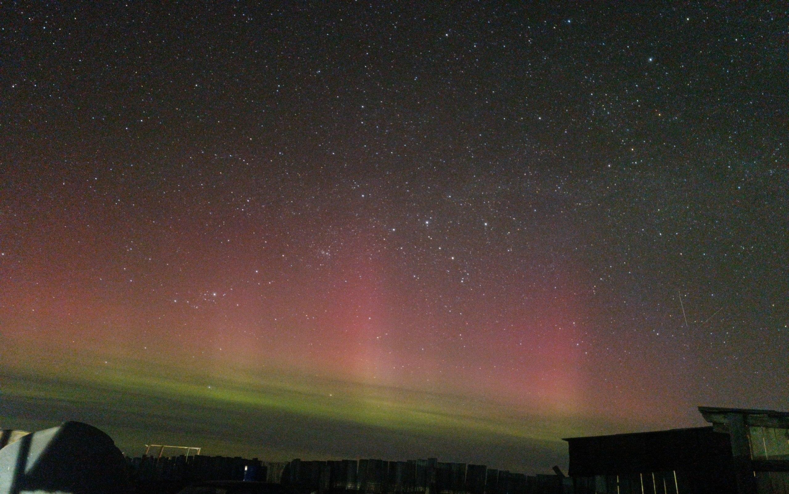 Фотография первого весеннего северного сияния в Омской области