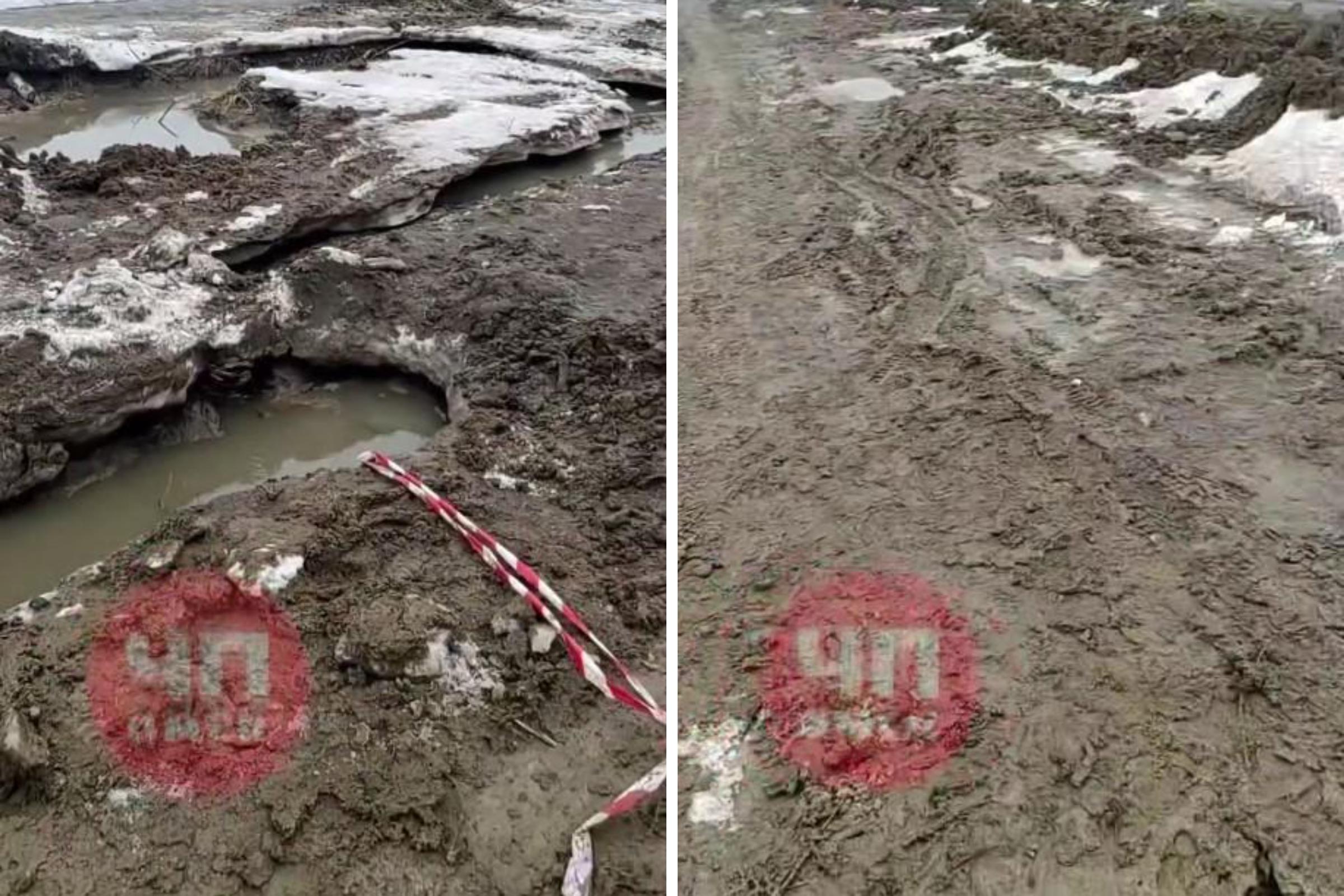 К сообщению приложили видео, на котором видно, как дорожное покрытие разрушено водой, образовались глубокие ямы. Известно, что в одну из таких ям уже провалился автомобиль.