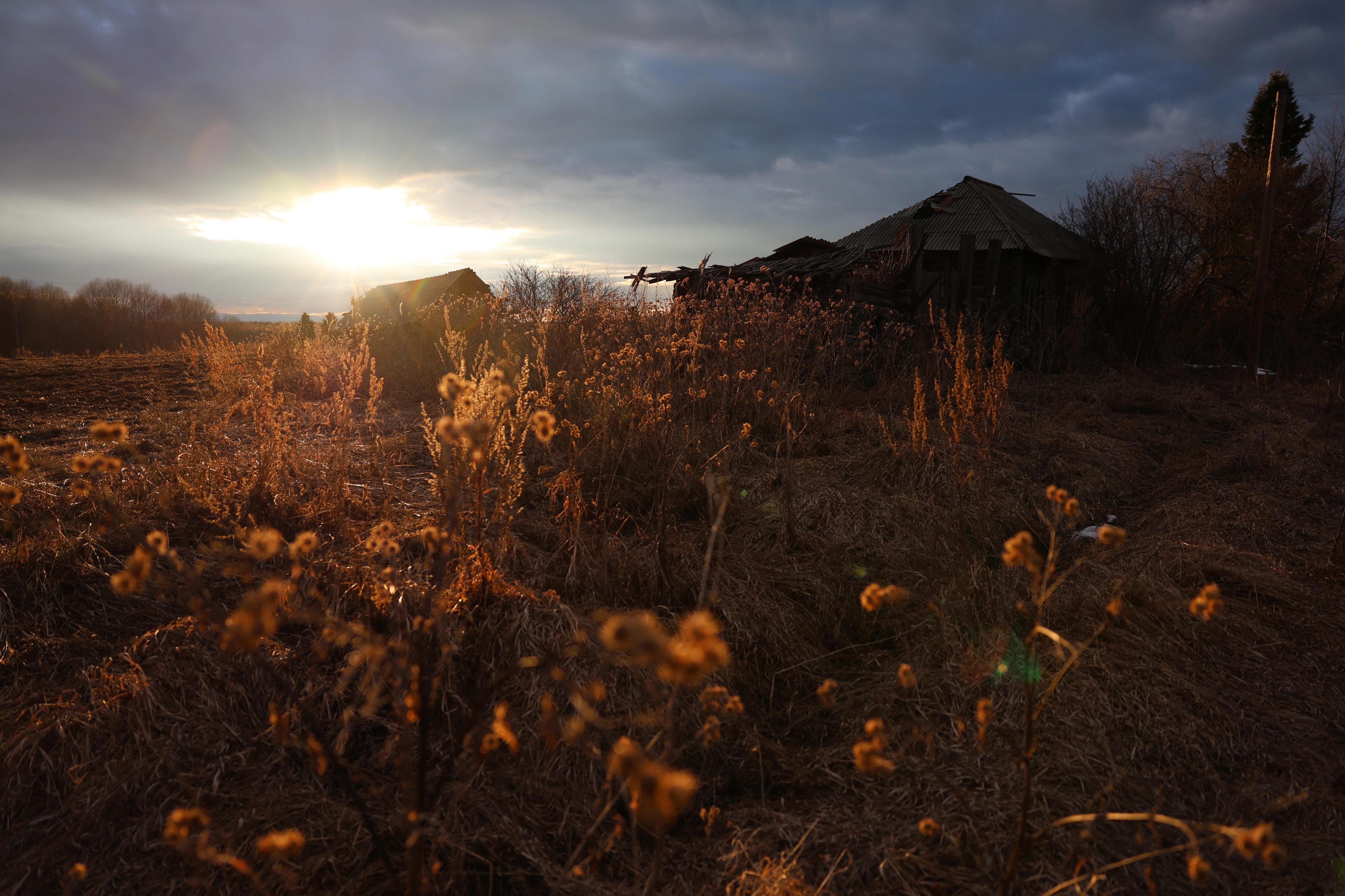 Денисовка расположена на высоком холме у реки Уй в Седельниковском районе. С этого места открывается вид, где свинцовое небо кажется тяжелым и давит на землю. Красота пейзажа становится особенно щемящей, когда ее наблюдают сквозь пустые оконные проемы покосившихся изб.
